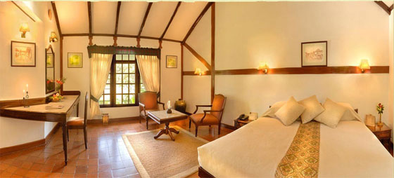 The resort's accommodation is divided into categories such as County Cottage, Presidential Villa, King's Court, Private Pool Villa. Amenities include direct dial telephone, colour television with satellite connection, en suite baths with running hot and cold water. The Private Pool Villas boast a separate living room and en-suite bedroom, with a courtyard and personal swimming pool with deck chairs. And, affording a pool view are two lovely sit-outs, complete with planters' chairs to laze on with a book and drink on hand.
