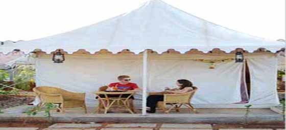 Haveli Inn consists of a unique luxury tent accomodation with bathroom and beautiful garden with 3 swimming pools.